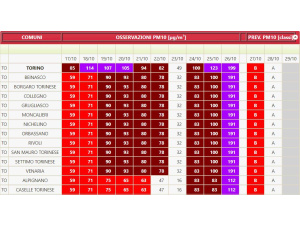 Nella notte di giovedì 26 ottobre a Torino i livelli di polveri sottili sono schizzati alle stelle. Secondo i dati validati dall’Arpa Piemonte ieri sono stati raggiunti i 199 µg/m³ di PM10. Mentre i dati rilevati da sistemapiemonte.it e pubblicati dal vice presidente di Legambiente Piemonte e Valle d’Aosta Federico Vozza sul suo profilo Facebook raccontano di un progressivo ed esponenziale aumento del PM10 durante tutta la giornata di ieri. Infatti se alle ore 17 i valori, se pur altissimi, si attestavano sui 173 µg/m³ alle ore 22 hanno toccato la vertiginosa cifra di 388 µg/m³.
